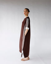 HIP STYLED VARSITY TRACK DRESS X CHOCOLATE BROWN