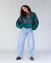 FREE PEOPLE HOLLY LONG SLEEVE KNIT TOP X GREEN COMBO