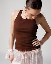 LACE & LOVE TANK TOP X BROWN