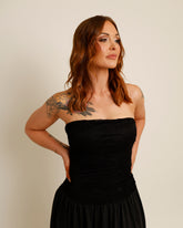 NIA SANTAL DROP WAIST MIDI DRESS X BLACK