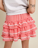 MA CHERIE STRAPLESS RED GINGHAM ROMPER