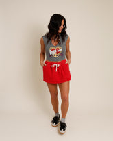 ON THE MOVE MAROON TRACK MINI SKIRT
