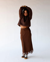 BLUEBERRY LACE TRIM MIDI SKIRT