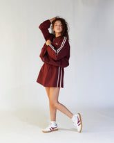ON THE MOVE MAROON TRACK MINI SKIRT