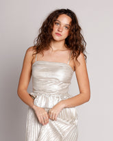 LUNAR GLOW PEPLUM PLEATED MAXI DRESS