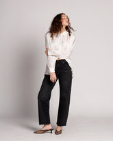 PISTOLA LEXI MID RISE BOWED STRAIGHT JEAN IN SILVER SCREEN