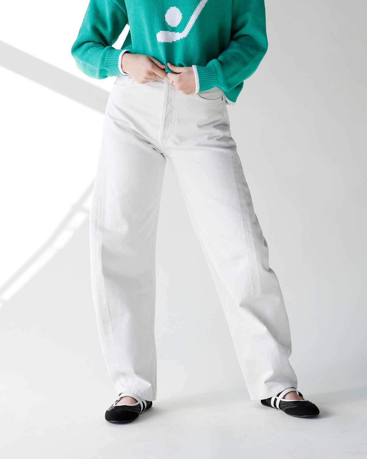 your new white obsession: the agolde luna pieced jean in chalk is high-rise, soft organic cotton, and designed with a relaxed full-length leg. pieced inserts at the outseam create a subtle bowed silhouette, effortlessly flattering and softening with every wear. perfect for coffee runs, errands, weekend strolls, or just showing up and looking cute. style with a cozy tee and sneakers, or a playful crop top and ankle boots β comfy, chic, and made for all your little adventures.