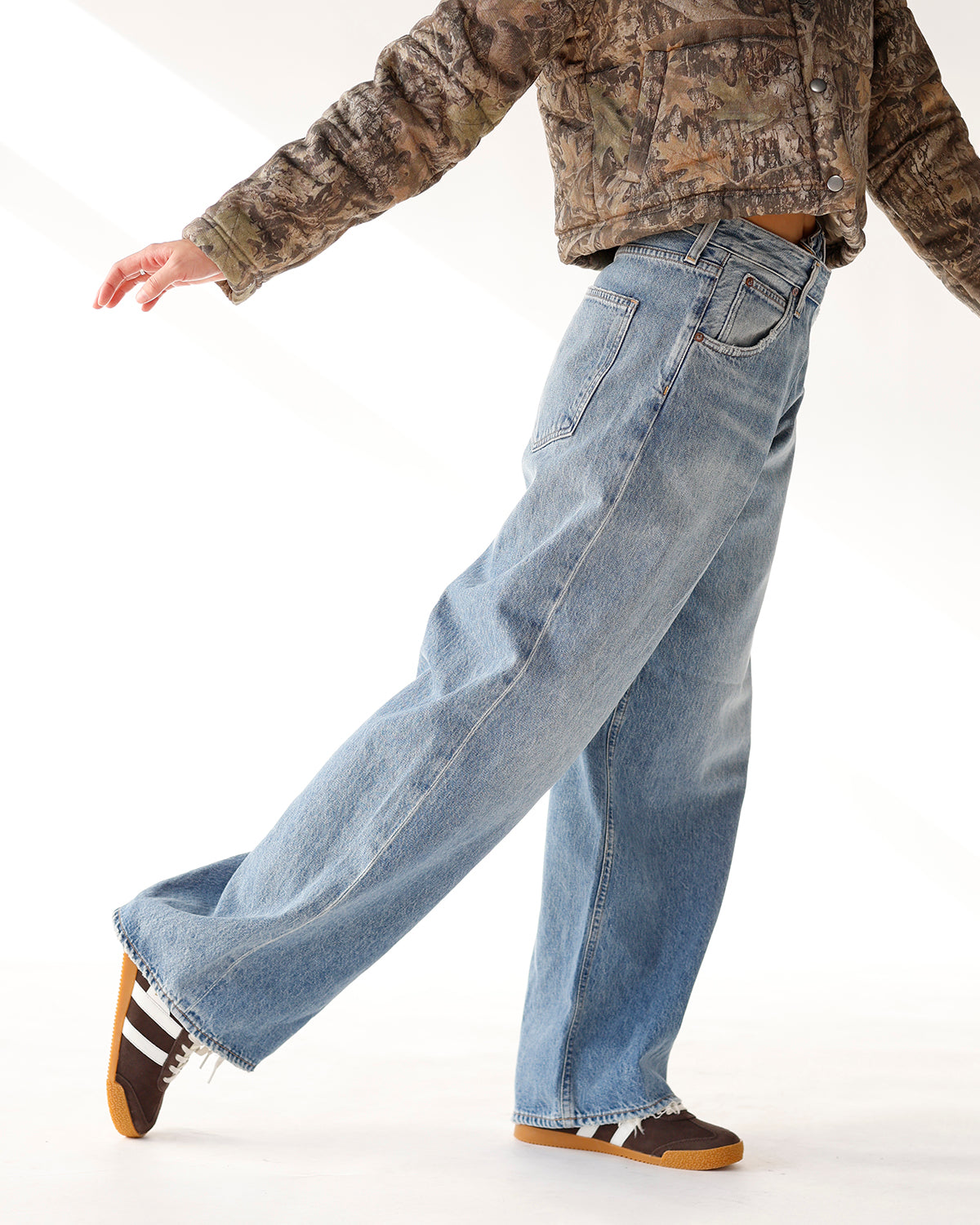 the the vana fold jean in mantra combines a timeless, relaxed look with a bold silhouette and signature “fold” closure. crafted from regenerative cotton, these jeans are not only effortlessly stylish but also sustainably made, supporting soil health and carbon sequestration. the low-slung fit and roomy, full-length leg create an oversized, laid-back vibe perfect for everyday wear. in dark indigo combines a timeless, relaxed look with a bold silhouette and signature “fold” closure. crafted from regenerative cotton, these jeans are not only effortlessly stylish but also sustainably made, supporting soil health and carbon sequestration. the low-slung fit and roomy, full-length leg create an oversized, laid-back vibe perfect for everyday wear!