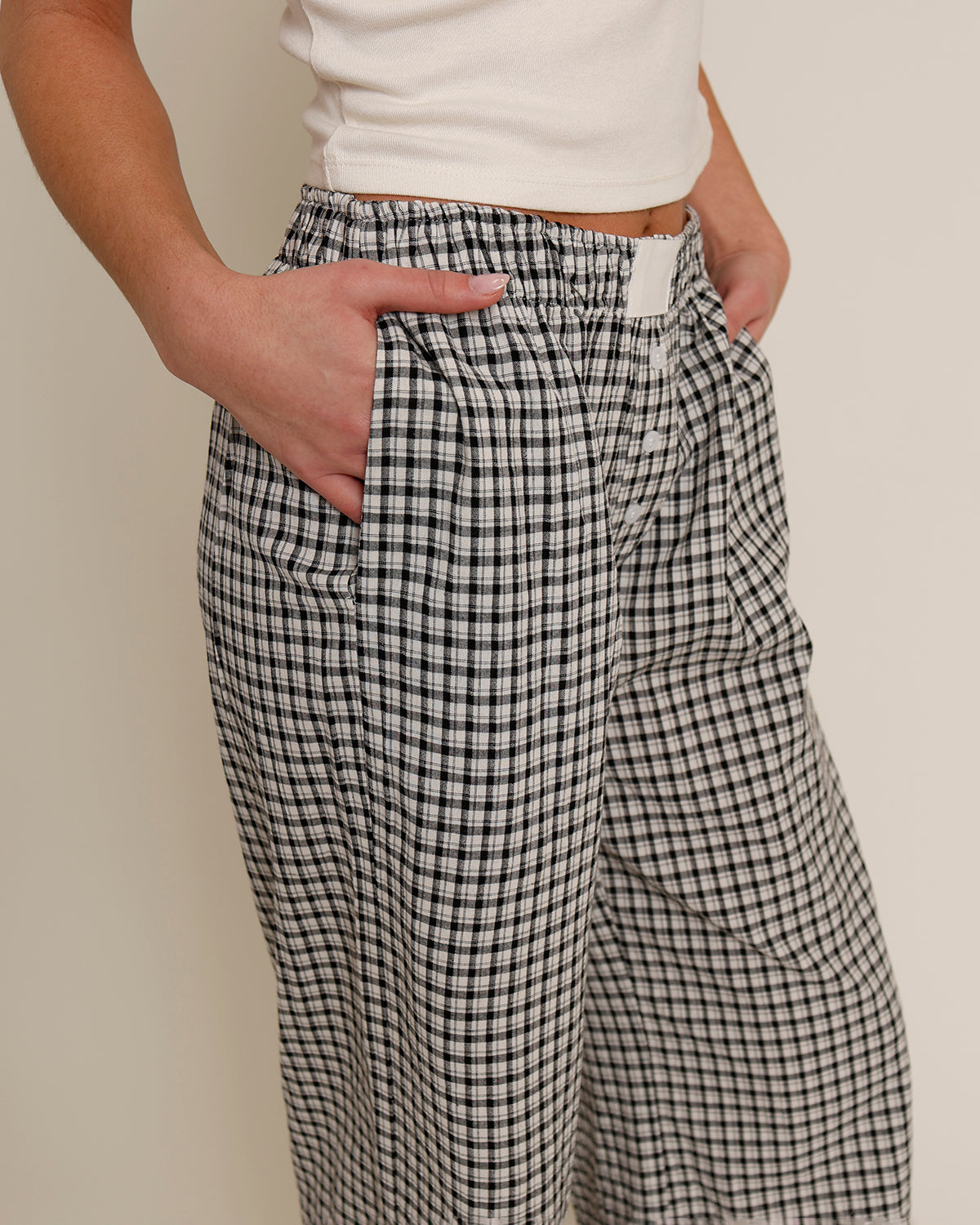 made from soft, breathable fabric and featuring a classic gingham print, these pants are perfect for everyday wear. get ready to be the best-dressed and most comfortable person in the room!