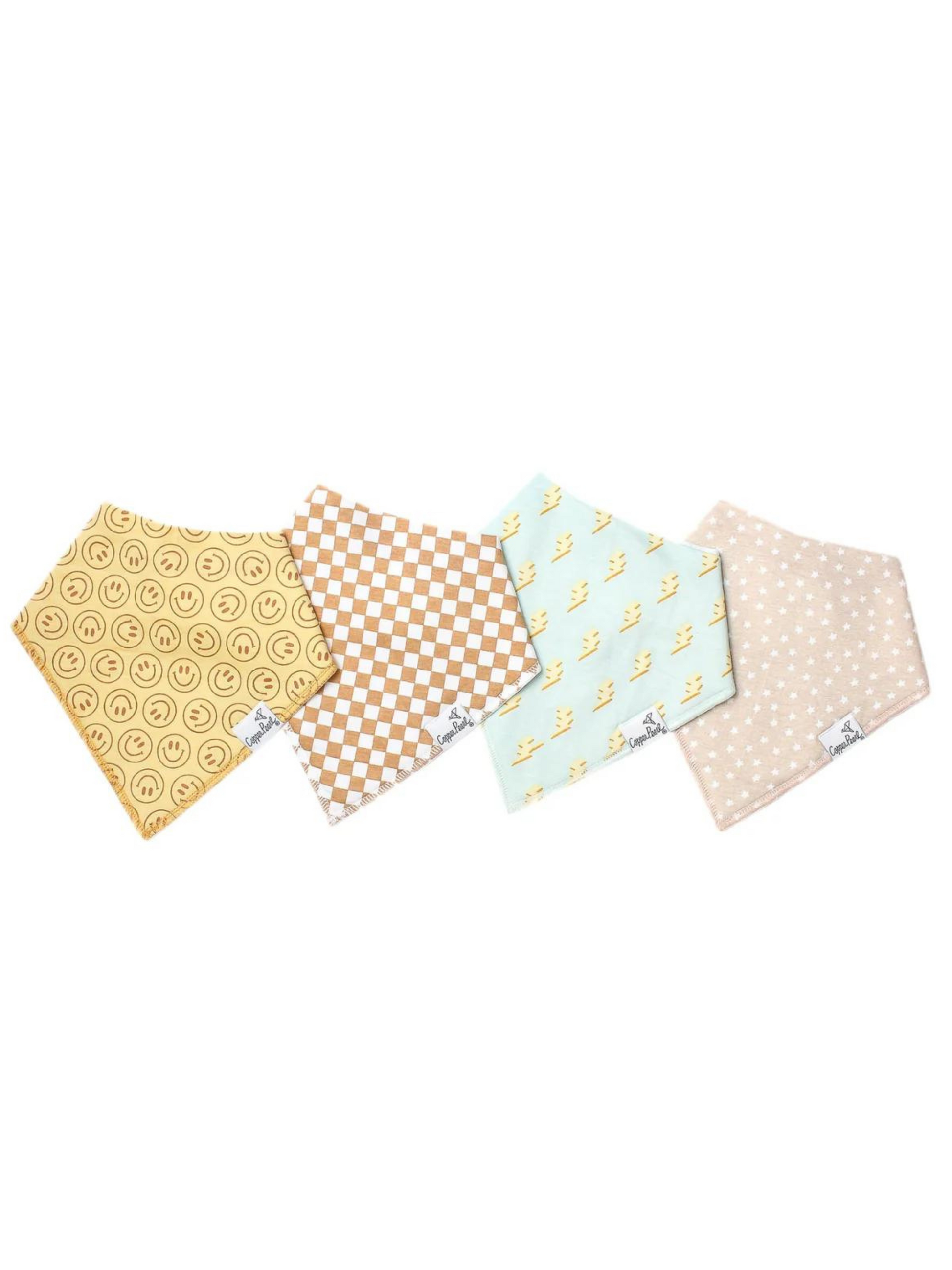 droolin' over these trendy and stylish baby fashion accessories! the copper pearl bib sets are a unique baby gift that will momma's can't get enough of! made with drool proof absorbent cotton and adjustable nickel-free snaps for ages 0-36 months. this set includes a pack of 4 unique and cohesive designs!