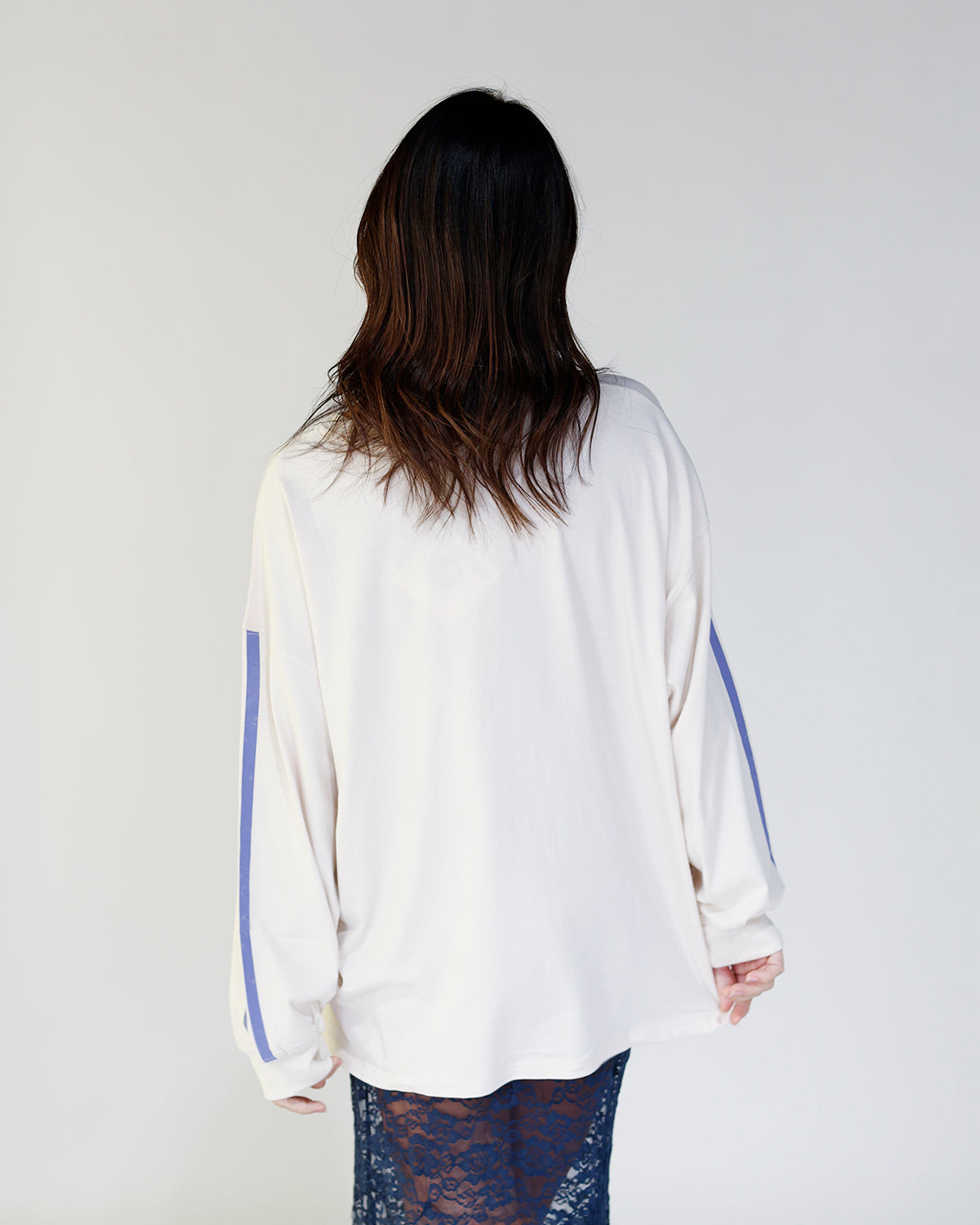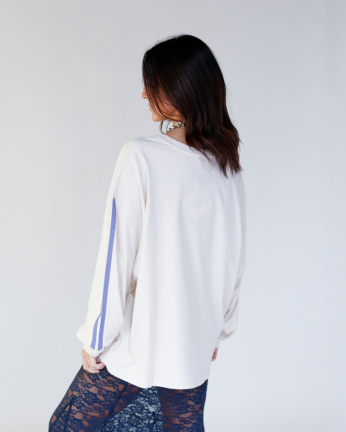 meet the waylon jennings nashville rebel os long sleeve by daydreamer — a laid-back essential that pays tribute to the original outlaw himself. featuring waylon’s name, an eagle emblem, and a nod to his nashville roots, this long sleeve channels that bold, rebellious energy he was known for. double sleeve stripes and star accents give it a vintage, collegiate-inspired touch that feels effortlessly cool. crafted from soft midweight cotton, this oversized long sleeve shirt drapes just right with its open neckline and dropped shoulders. designed in a one-size-fits-all silhouette, it flatters every shape with that perfectly relaxed fit daydreamer is loved for. pair it with jeans and boots for that easy country edge, or style it with leather pants for a modern, rock ‘n’ roll twist. comfy, iconic, and full of attitude — this long sleeve is made for true nashville rebels.