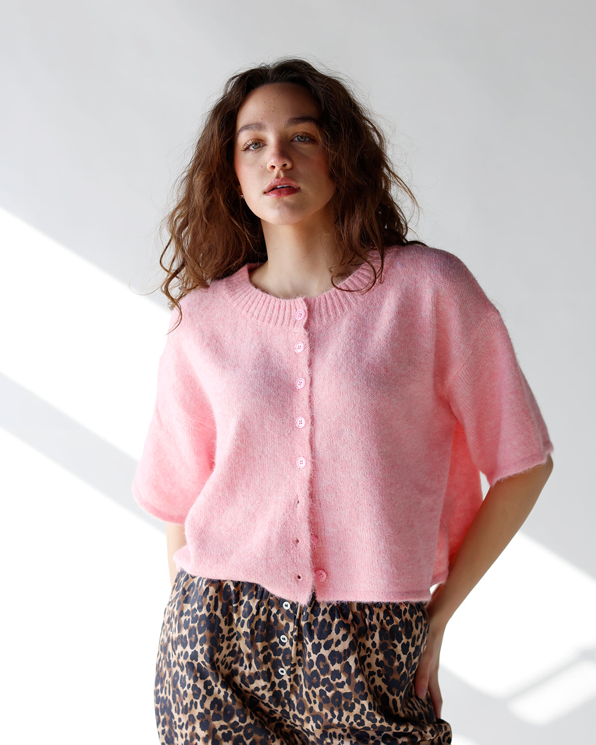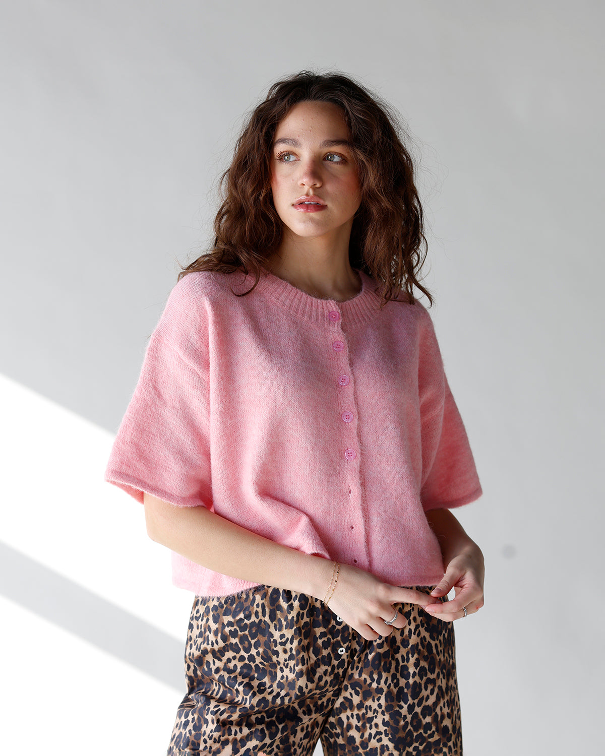 - light pink cardigan