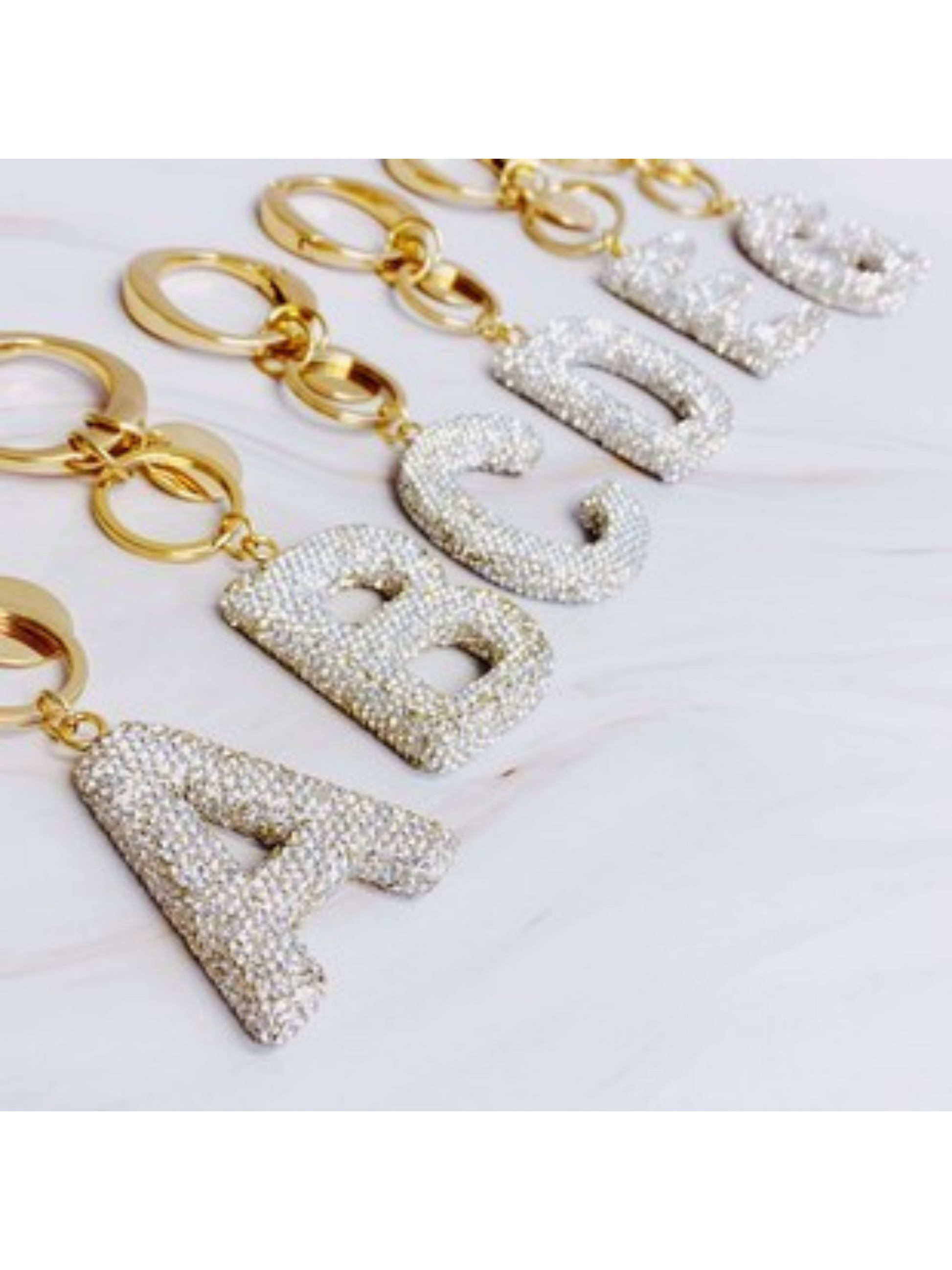 elevate your accessories with our it girl glam initial key chain. this cute and bold keychain adds a stylish touch to any bag or keys. perfect for gifting to friends and family, it's a fun and fashionable way to show off your personality. overall dimension: approximately 4.75" x 1.5" including key chain and initial. each initial: approximately 2" x 1.5" each initial may have different dimensions.