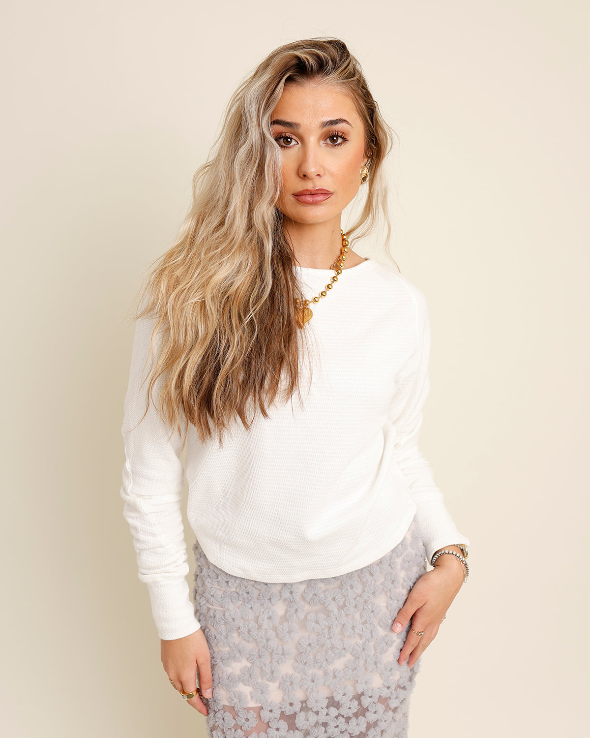 the jess long sleeve from we the free, free people’s in-house label, is your new go-to for cozy, effortless style. crafted from a soft, textured thermal cotton blend, this top features a flattering boat neckline and relaxed dolman sleeves that create a slouchy, lived-in vibe perfect for layering. subtle seamed details add shape and structure, while elongated cuffs give a touch of refined coziness. whether you’re running errands, sipping coffee on the weekend, or layering under jackets and cardigans for a chic layered look, the jess long sleeve moves with you and keeps your outfits feeling fresh and effortless. versatile, comfy, and full of character, it’s a wardrobe staple you’ll reach for again and again!
