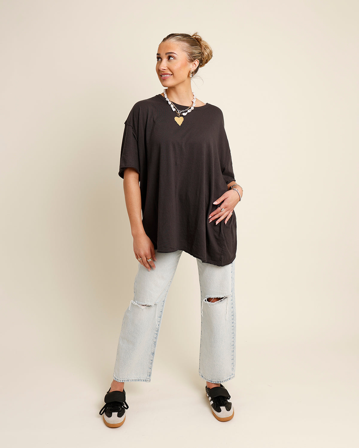 your new go-to, everyday tee — soft, slouchy, and effortlessly cool. with a relaxed fit, dropped shoulders, and that just-right lived-in feel, the nina is made for tossing on and going. perfect with denim, layered under overalls, or half-tucked into your comfiest sweats. it’s one of those tees you’ll wear on repeat without even thinking about it!