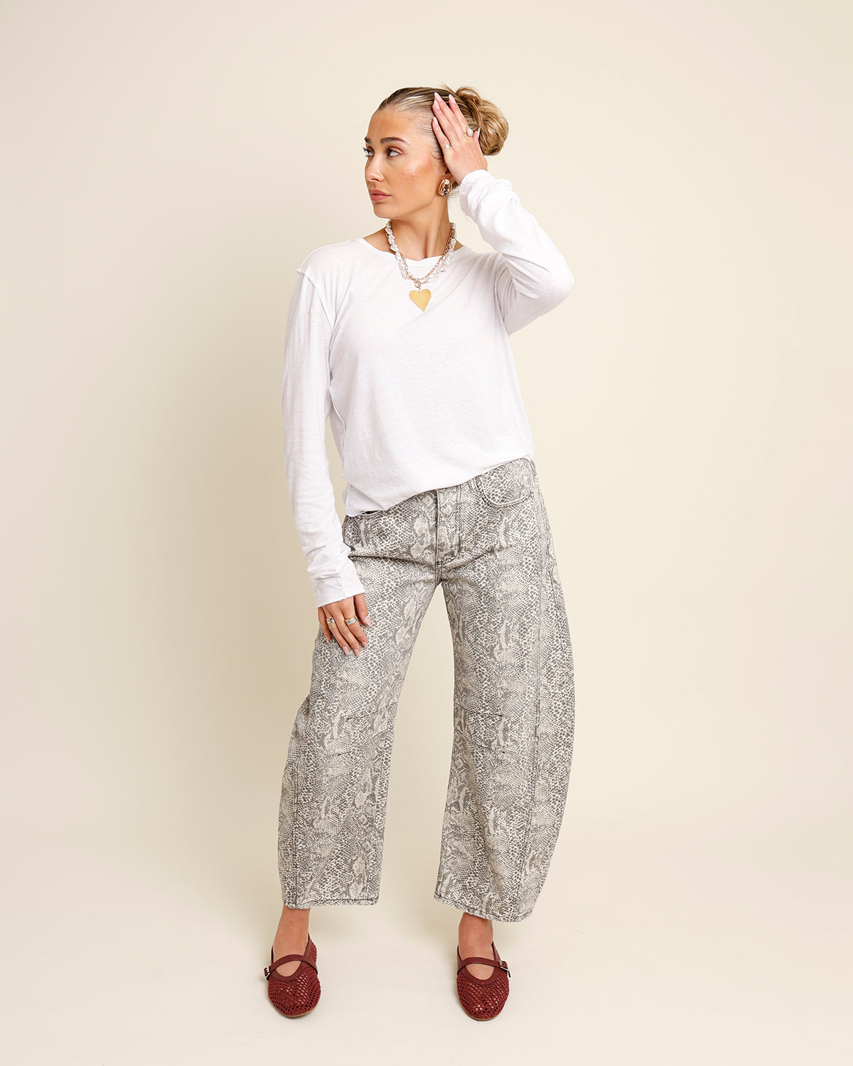 soft, easy, and just the right amount of worn-in. this tee has a relaxed silhouette with raw edges and raised seams for a touch of texture. the heathered fabric gives it that vintage feel, like something you’ve had forever. pair it with denim, layer it under overalls, or toss it on with lounge pants — it’s that tee you’ll keep grabbing!!
