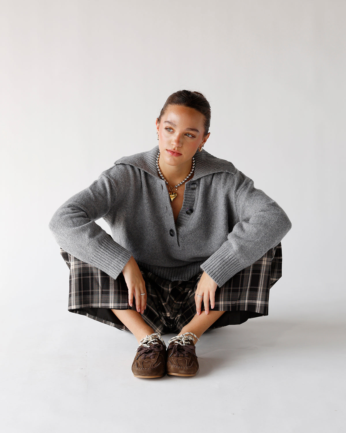 FREE PEOPLE TRADING UP POLO SWEATER X GREY