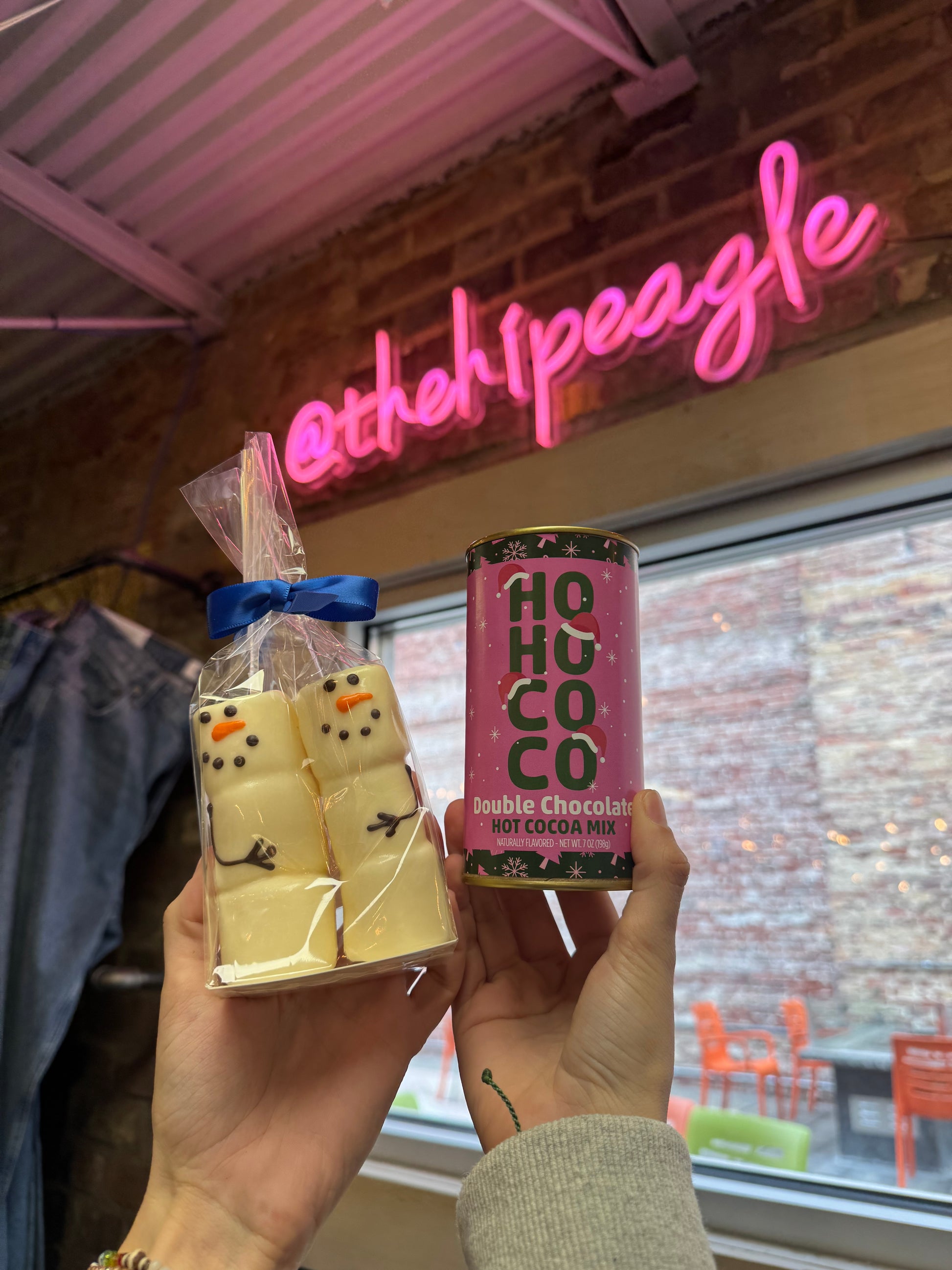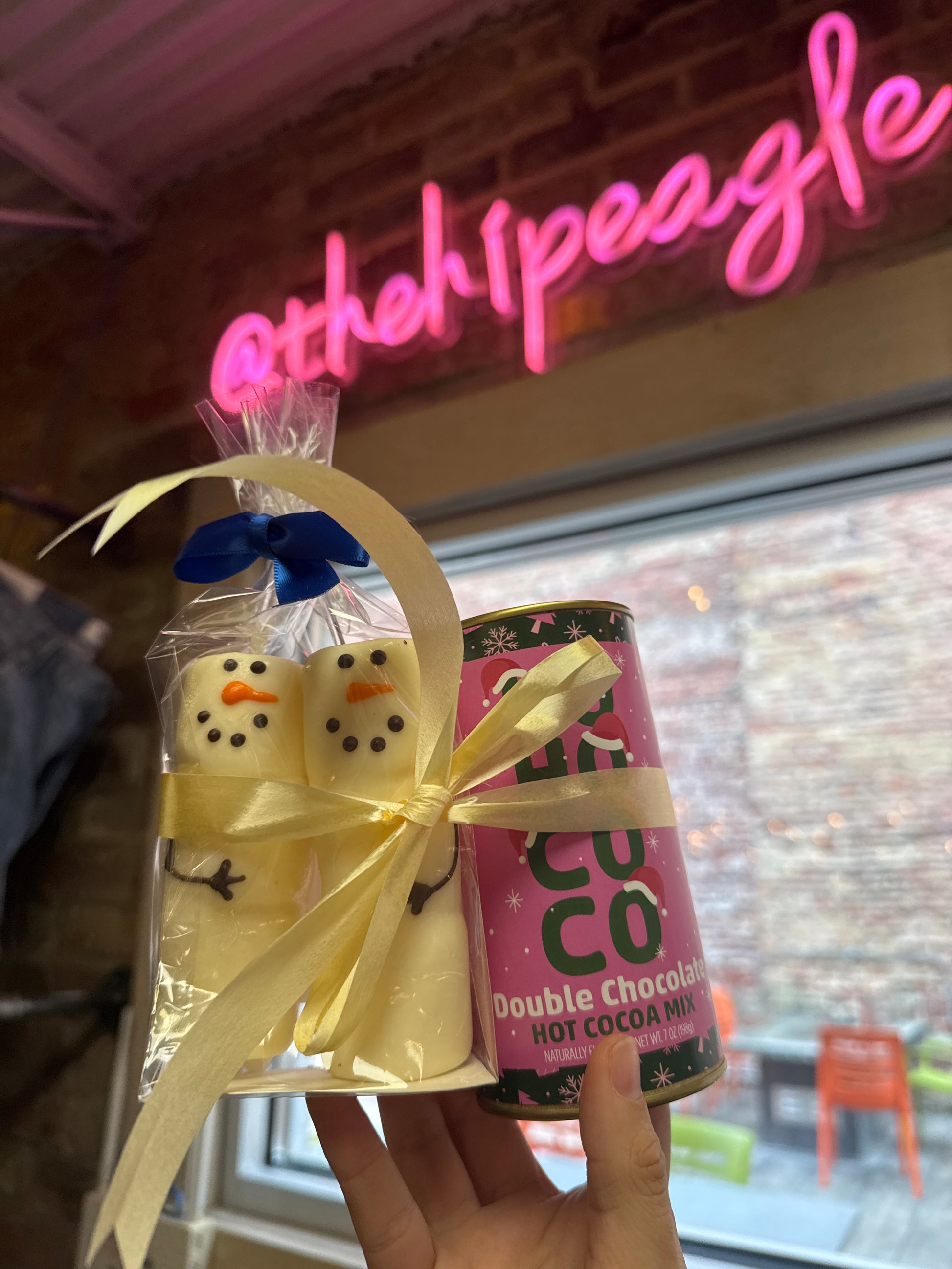 give the gift of instant winter joy. frosty’s double chocolate bundle comes with rich double-chocolate hot cocoa mix and two snowman-decorated marshmallow sticks (that’s six chocolate-covered marshmallows!) for the sweetest seasonal sip. it’s cozy, cute, and guaranteed to make anyone smile. perfect for loved ones, stocking stuffers, or an easy, thoughtful teacher gift.