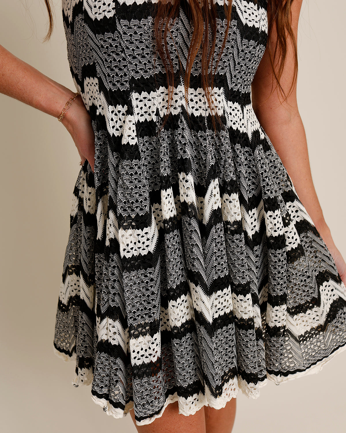 shake up your wardrobe with the genesis mini dress. this a-line dress features a playful godet design, adding movement and flow to your look. the bold black and ivory color palette makes a statement, perfect for any occasion.