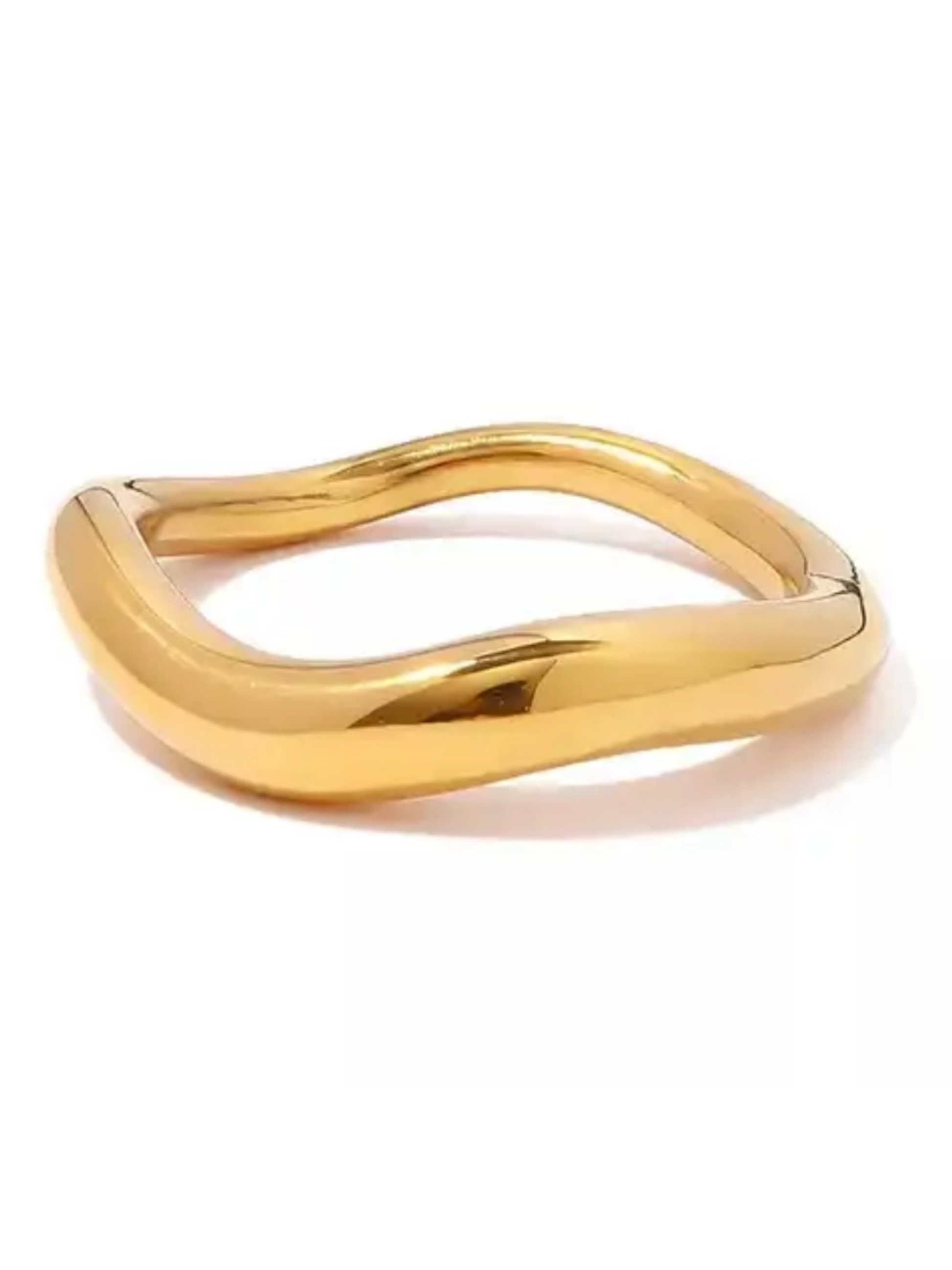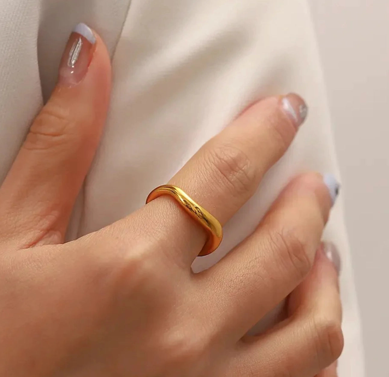 ride the wave with our harper ring, a simple band ring featuring a gold pvd plated steel design. perfect for stacking or wearing solo, add some flow to your style with this versatile ring!