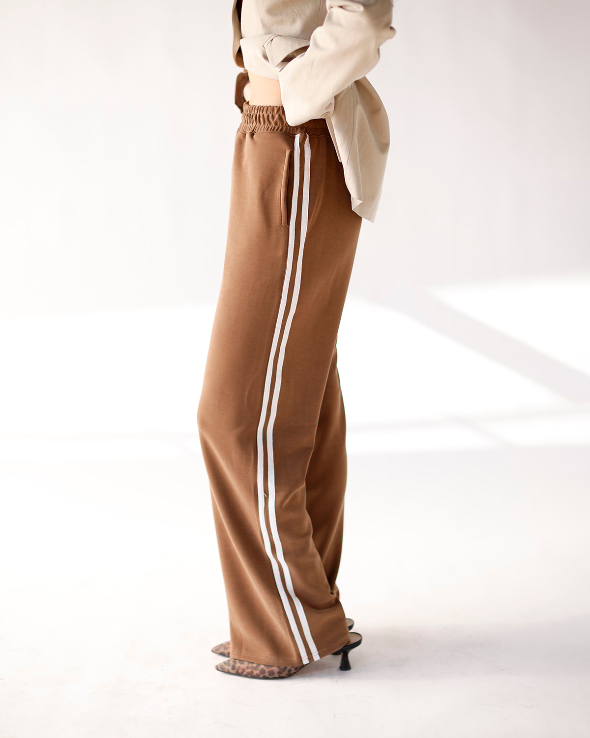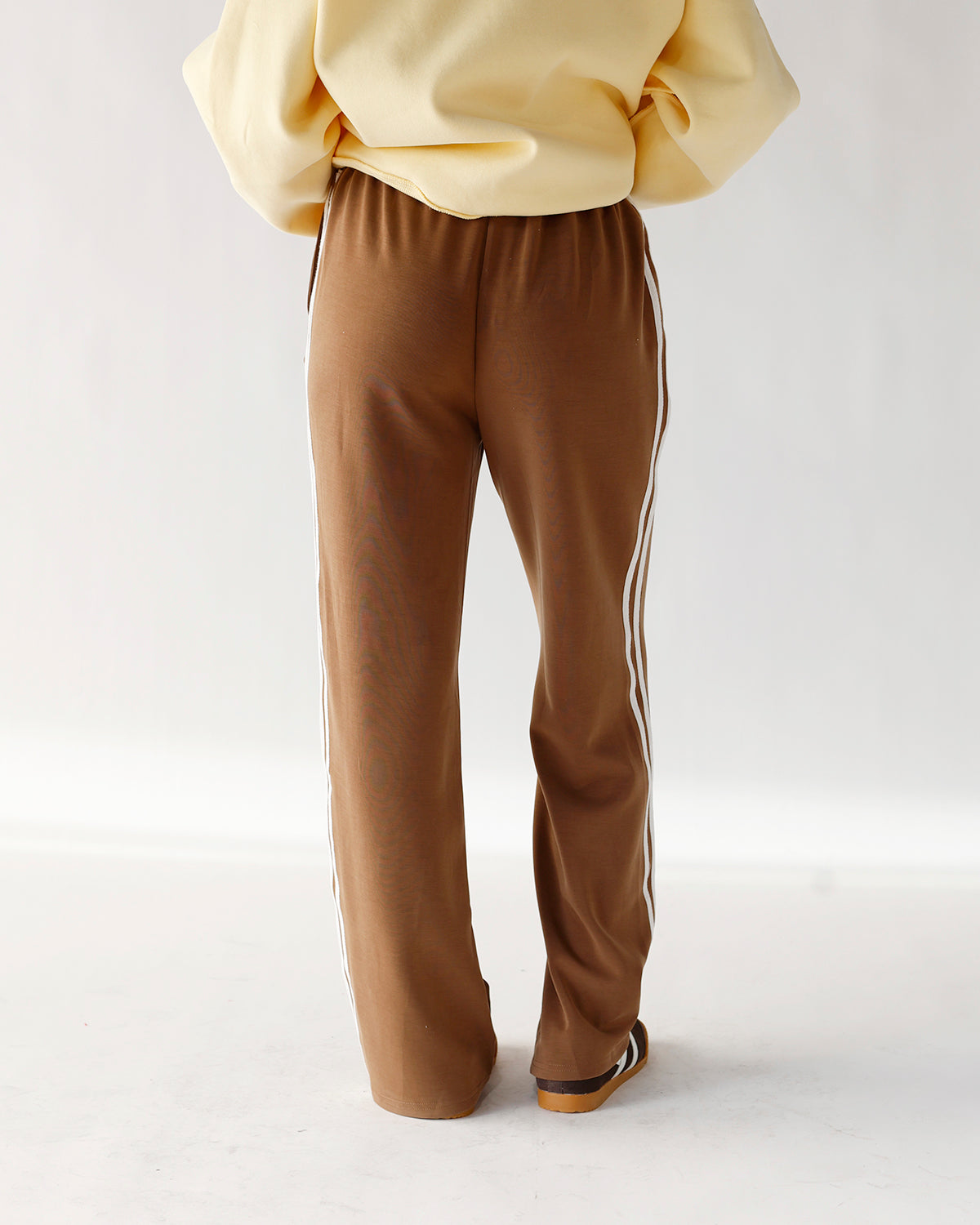 meet the hip like butta track pant x brown, your new go-to for effortless style and all-day comfort. part of the hip eagle, our signature in-house brand built to deliver easy, everyday staples with a little extra style, these track pants are crafted from an ultra-luxe, butter-soft fabric that feels as good as it looks. the rich brown base with a clean cream track stripe gives a nod to retro athletics while keeping things modern and wearable. designed with an elastic waistband and side pockets, they’re perfect for lounging, running errands, or styling with a fitted crop, oversized tee, or blazer for a casual-chic vibe. soft, versatile, and effortlessly cool, the hip like butta track pant x brown is made to move with you while keeping your look on point.