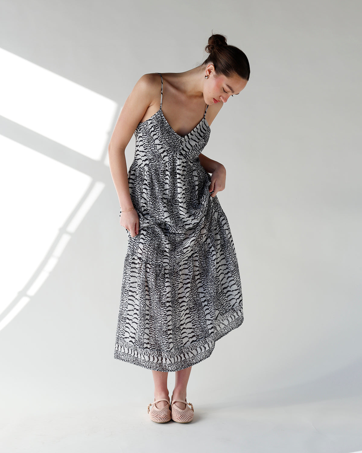 step into effortless style with the it girl mesh ballet flat in powder pink. featuring a soft woven textile upper, a classic mary jane strap, and a lightly cushioned footbed, these flats are perfect for everyday wear or dressing up your favorite looks. airy, feminine, and versatile, they pair beautifully with skirts, dresses, or cropped trousers for a chic, modern vibe.