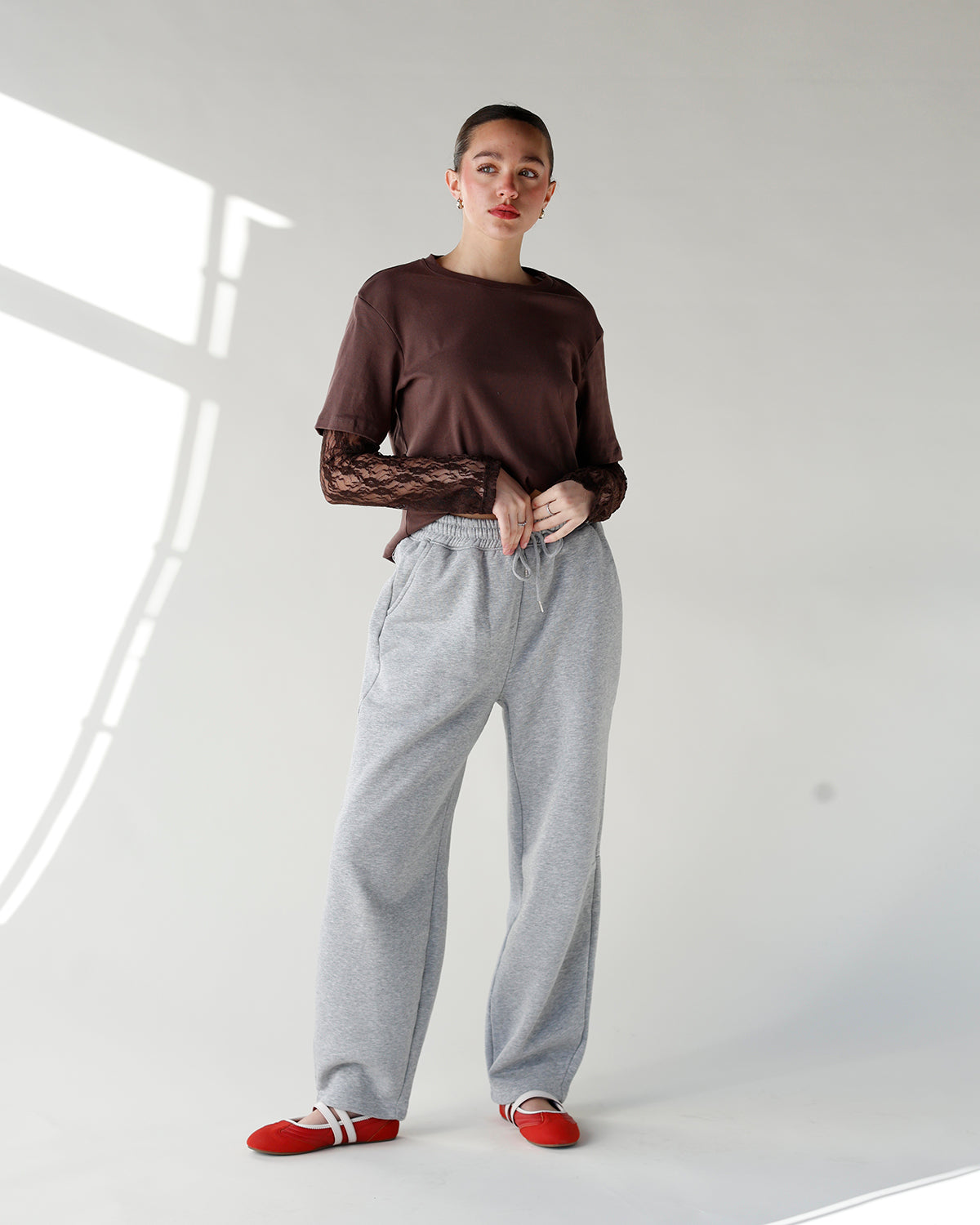 where classic comfort meets delicate detail — the lace about it tee in brown elevates a wardrobe essential with dreamy contrast lace sleeves that add just the right touch of romance. the soft, breathable body keeps it cozy for everyday wear, while the layered lace sleeves bring a whimsical, vintage-inspired vibe that instantly dresses things up. style it with wide-leg trousers and loafers for a polished look, tuck into a satin midi skirt and boots for date night, or pair with jeans and sneakers for effortless casual-cool energy. feminine, versatile, and endlessly wearable — this tee is the kind of piece you’ll reach for again and again.
