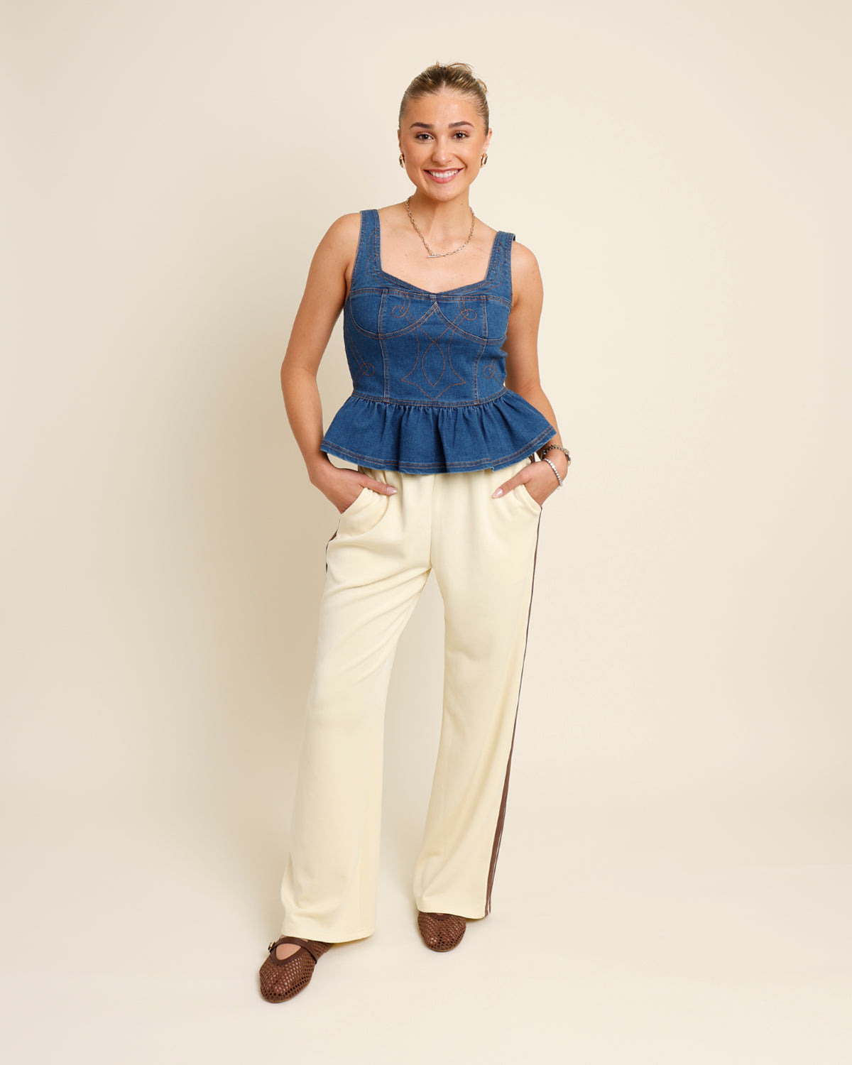 meet the like butta track pant — part of the debut collection from the hip eagle, our store’s first-ever in-house brand. crafted from an ultra-luxe butter-soft fabric, these track pants deliver comfort without compromising style. the bold yellow base and retro-inspired brown side stripe give a nod to vintage athletics with a modern twist. designed with an elastic waistband and side pockets for everyday ease, this is the kind of piece you’ll want to live in. whether you're lounging, running errands, or dressing it up with a crop or jacket, these pants are made to move with you.