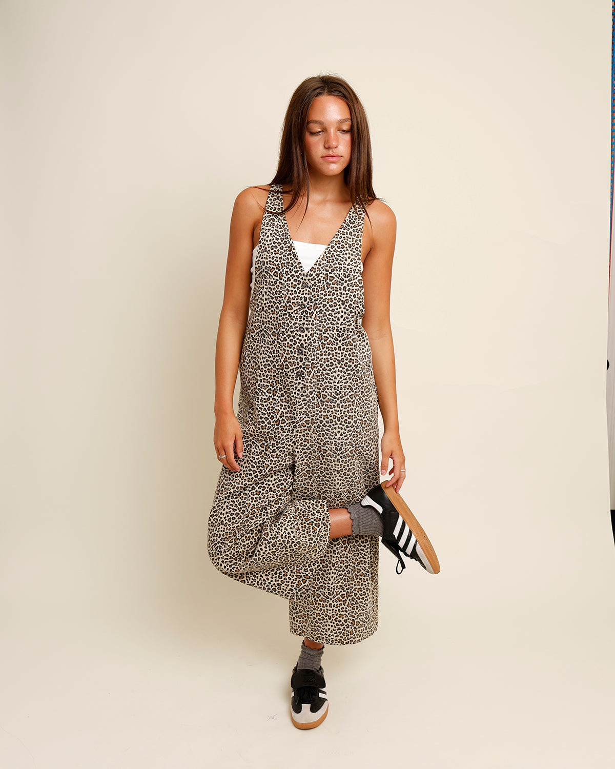 step into the wild side with the mesa leopard print denim jumpsuit! this playful, summery jumpsuit features a bold leopard print on soft denim, blending comfort with fierce style!! perfect for sunny days when you want to stand out and embrace your adventurous spirit!
