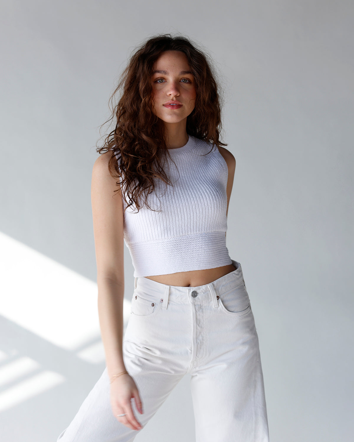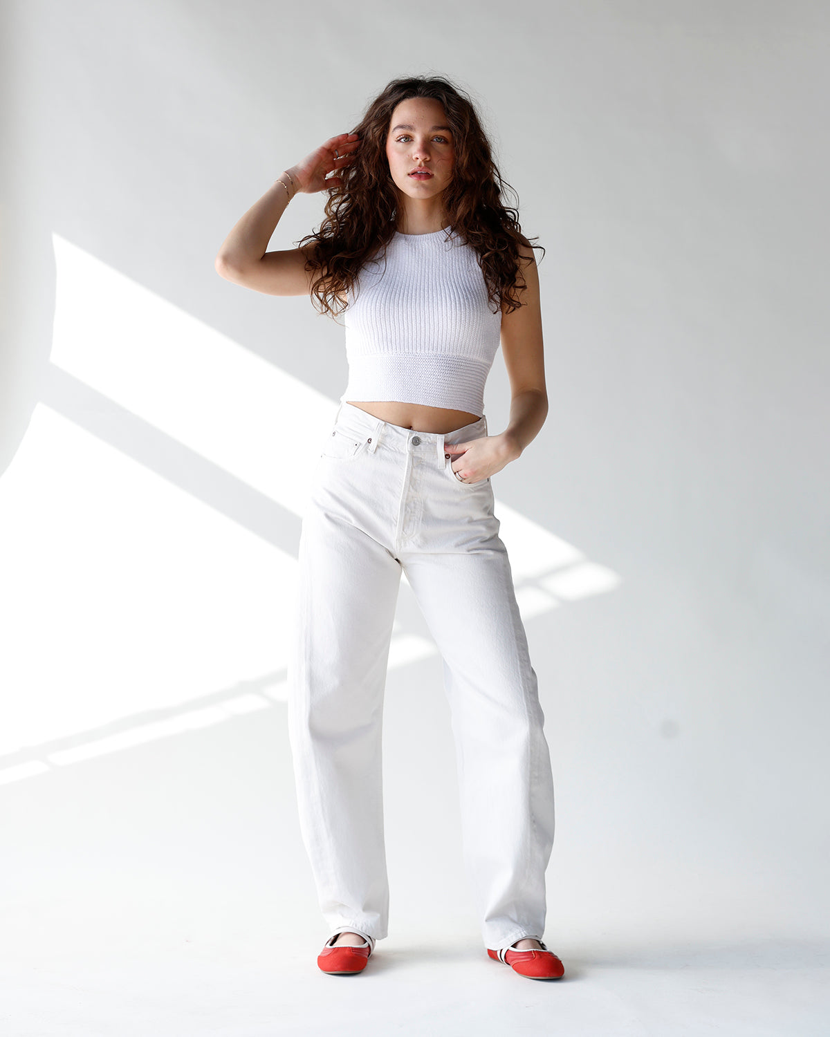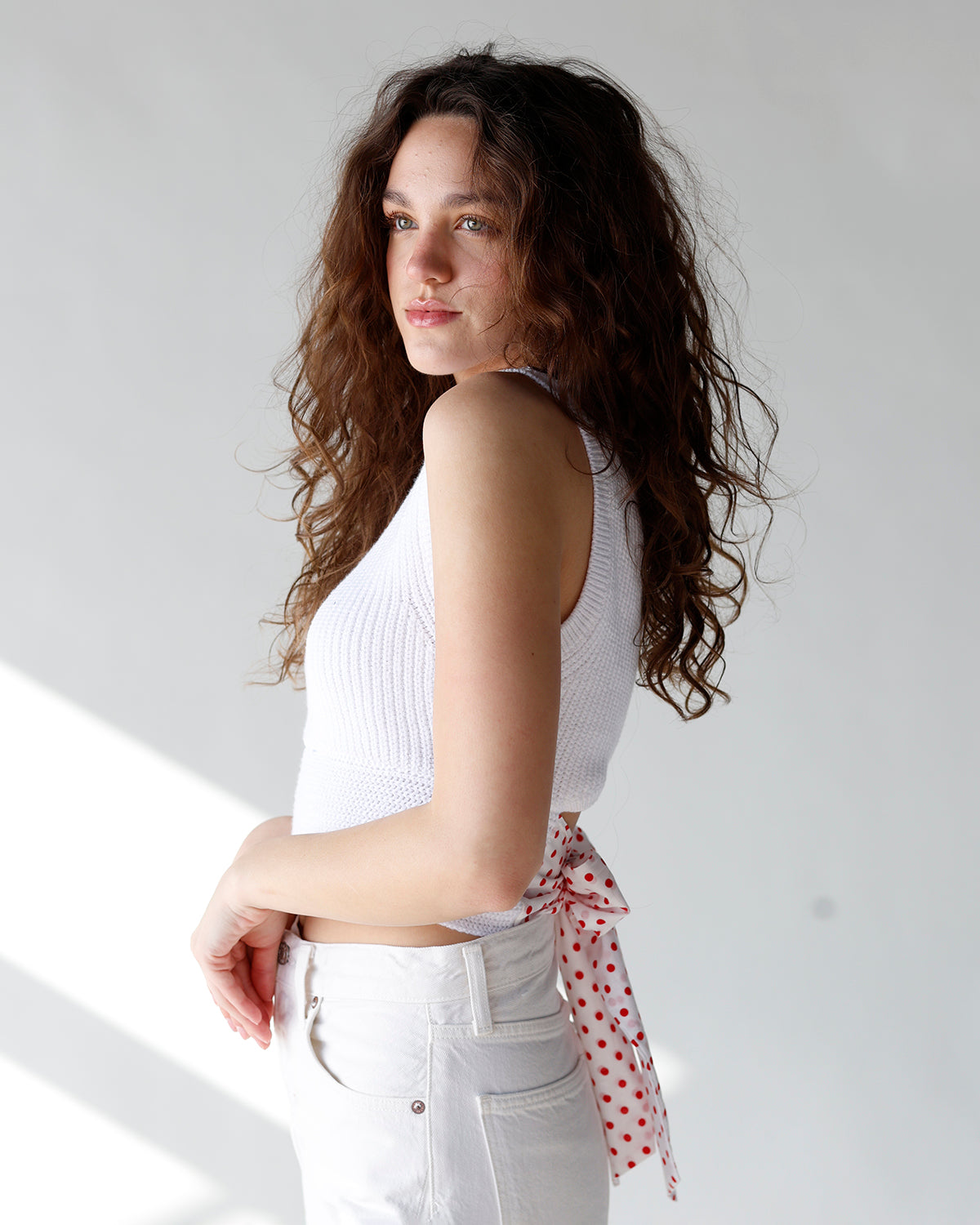the peek-a-dot darling sweater x white is playful, flirty, and full of charm. soft white and sleeveless, it features an open-back peekaboo detail with a sweet white-and-red polka dot tie that adds the perfect finishing touch. fitted and flattering, it looks adorable paired with high-waisted jeans, skirts, or tailored shorts for brunch, coffee dates, or springtime strolls. cute, comfy, and made to show off just enough playful personality.