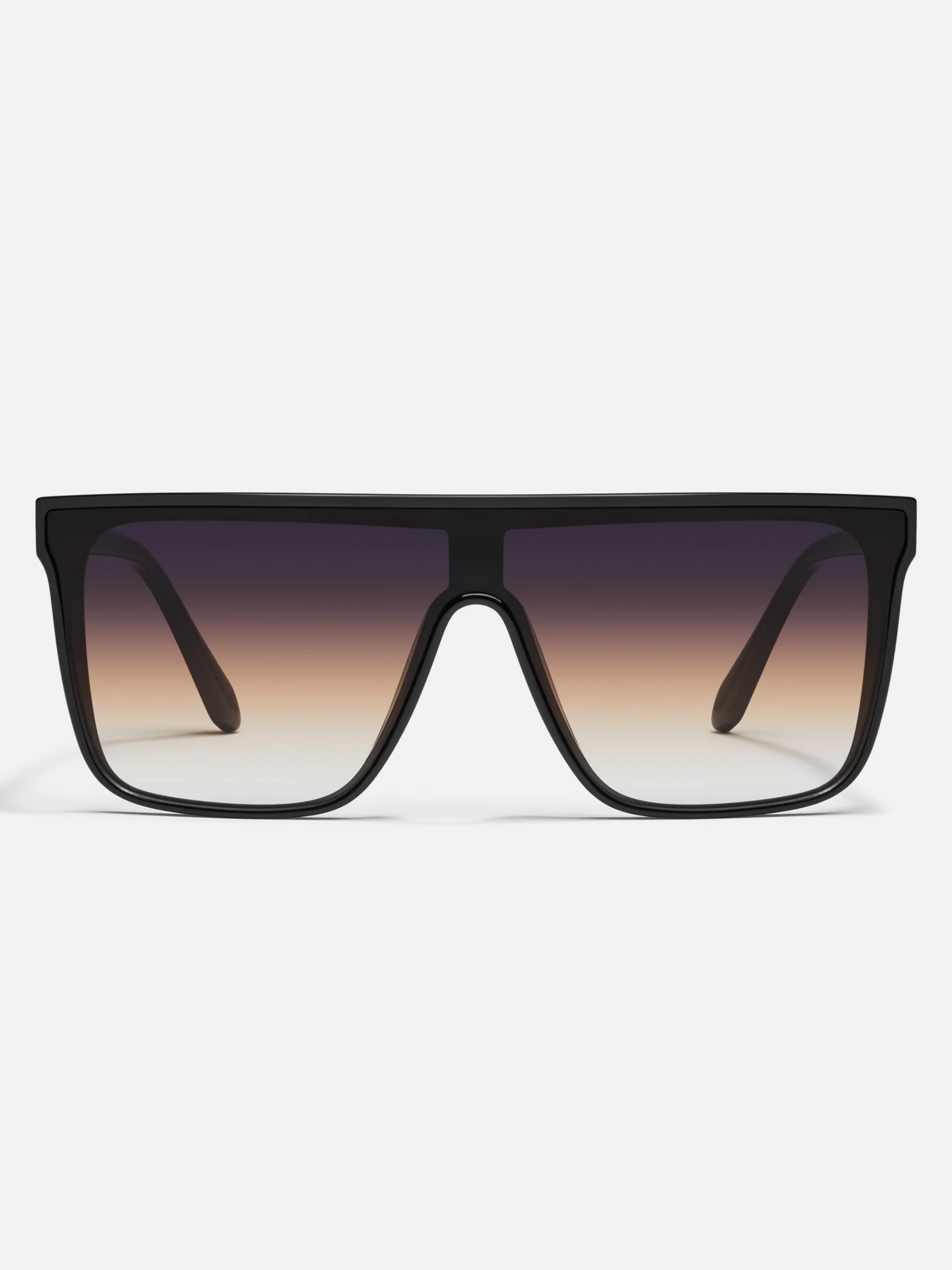 quay's #1 selling and most universally flattering unisex shield, nightfall, is perfect to wear all through the day or night. these feature an oversized flush lens to give you a super modern look for any event, and a minimal frame that’s so light you won’t even feel it. these sunnies have you (and your eyes) covered!