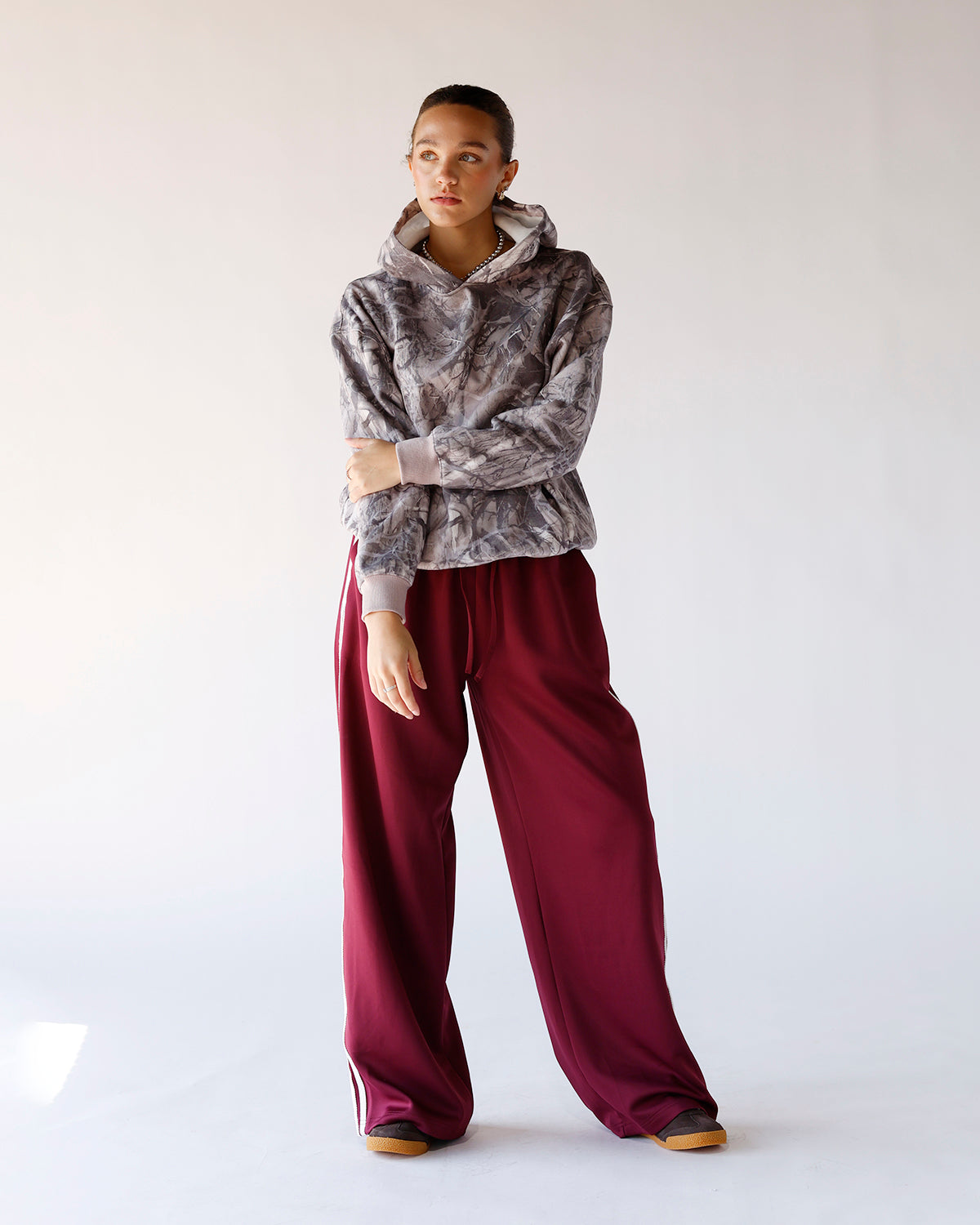 the ryker camo hoodie is the ultimate blend of comfort and street-ready style. crafted from luxuriously soft fleece french terry, this hoodie features an exclusive camo print that’s both classic and fresh, perfect for adding subtle edge to your everyday wardrobe. its oversized fit gives you that effortlessly relaxed silhouette, making it ideal for layering over your favorite tees or sweaters. designed with roomy front pockets to keep your hands warm or stash your essentials, plus a cozy hood to shield you from chilly days or breezy nights. whether you’re lounging at home, grabbing coffee with friends, or hitting the city streets, the ryker camo hoodie keeps you looking laid-back and on point. durable, breathable, and styled to move with you, it’s the perfect companion for those who want to stay cozy without sacrificing cool!