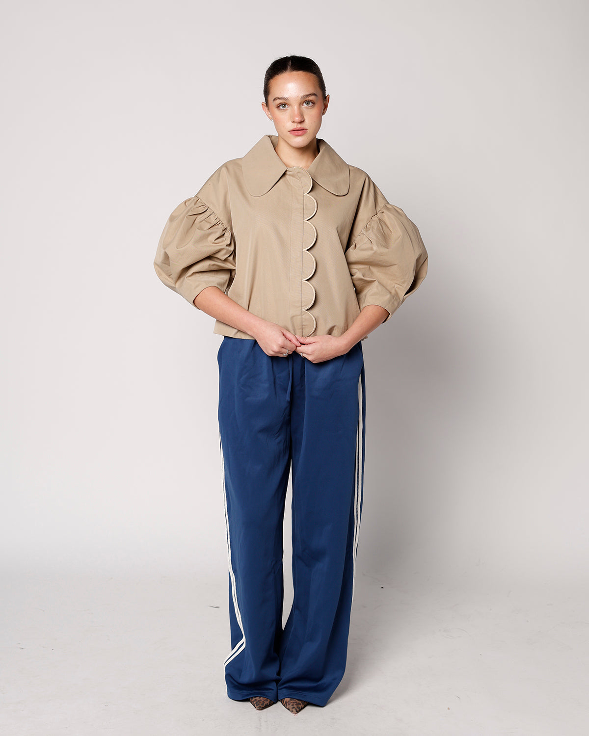the scalloped sweetheart puff sleeve jacket is the definition of soft, romantic style with a little extra flair. featuring a flattering boxy fit, dreamy puff sleeves, delicate scalloped hem detailing, and a classic button-front closure, this taupe beauty instantly elevates any outfit. it’s lightweight yet structured enough to polish your look, making it perfect for layering over dresses, styling with denim and a tee, or throwing on with trousers for an effortlessly put-together vibe. whether you’re heading to brunch, date night, or just want to feel cute running errands, this jacket adds that “something special” touch you didn’t know your closet was missing. feminine, versatile, and undeniably charming — this is the piece you’ll reach for again and again. 💫