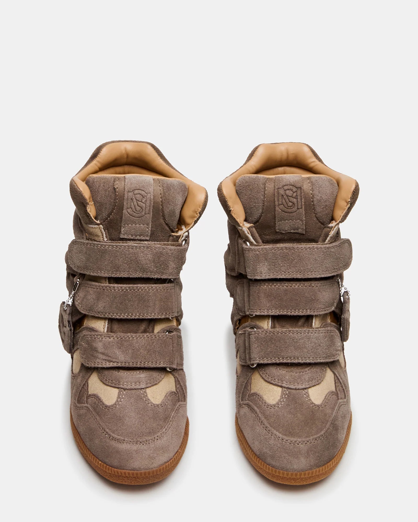 STEVE MADDEN MAVIS HIGH-TOP VELCRO WEDGE SNEAKER X TAUPE SUEDE