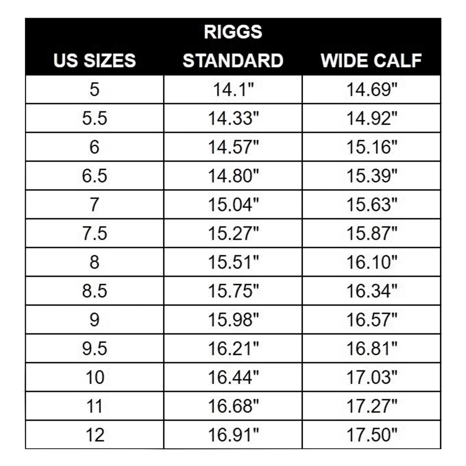 - size 8 measurements: 15.51 inch shaft circumference, 14 inch shaft height