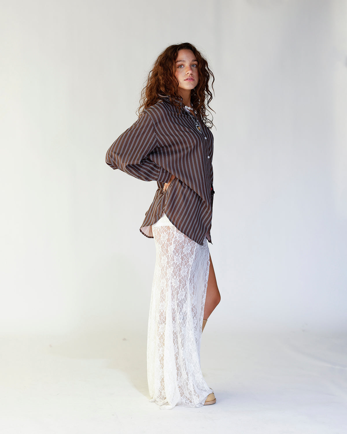 add a touch of cozy charm to your wardrobe with the sugar & spice button-up. featuring warm brown tones and crisp stripes, this loose-fit long sleeve shirt is perfect for layering or wearing on its own. button it up for a polished look, leave it open over a tee for casual vibes, or tie it around your waist for that effortlessly relaxed fall style. pair it with high-waisted jeans and ankle boots for coffee runs, or layer it over leggings and sneakers for a weekend-ready outfit. the soft, airy fabric makes it easy to move, making this button-up a go-to for every autumn adventure.