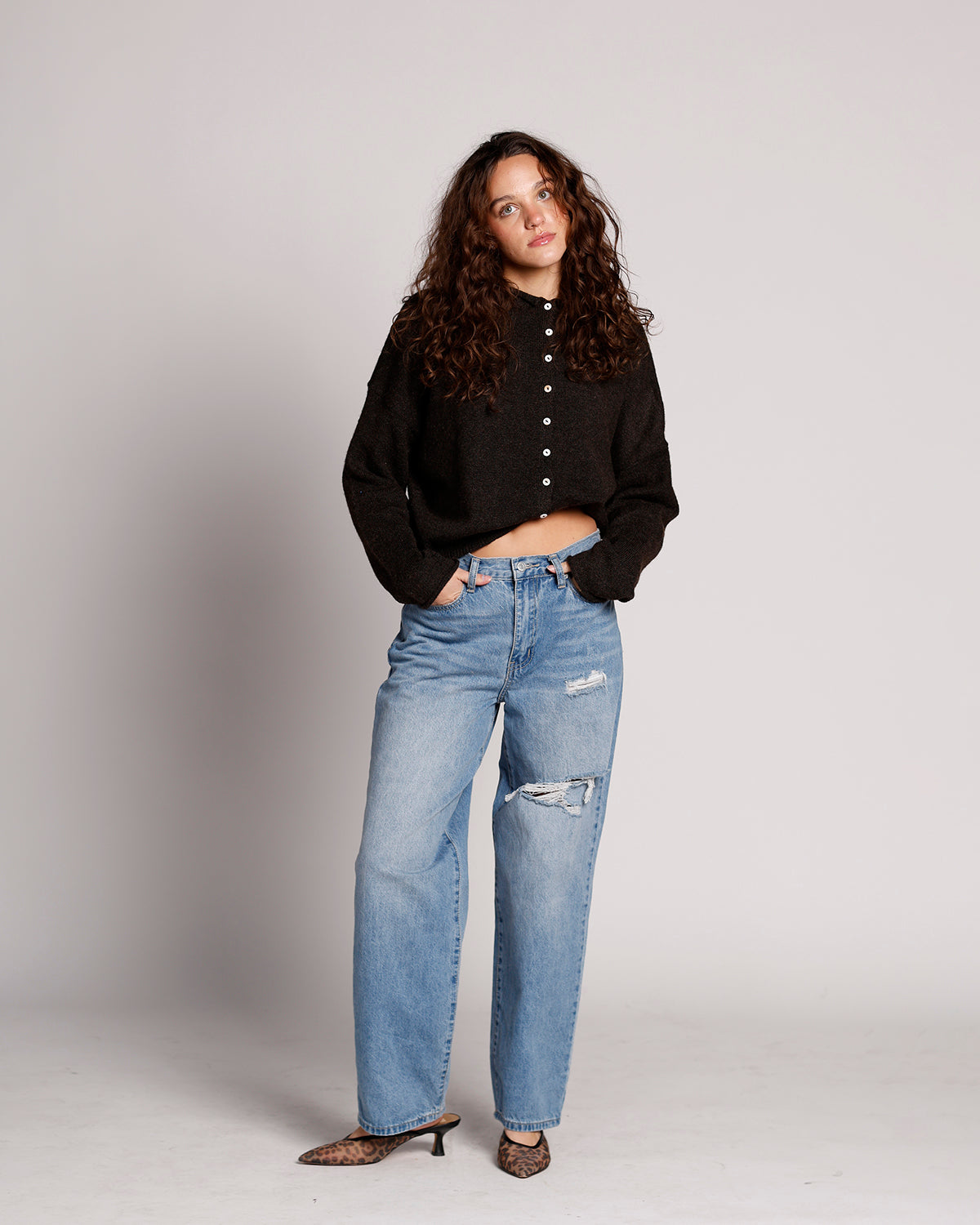 once you try just one color, you’ll want them all! the cult cardi x chocolate brown has a soft rolled neckline, button-front closure, and a lightweight fit that hits just below the waist, making it perfect for layering. the rich chocolate hue adds warmth and versatility to any outfit. wear it closed and tucked with trousers for work, styled with a bra tuck and jeans for date night, layered over a dress, or under overalls — the possibilities are endless. soft, versatile, and effortlessly stylish, this chocolate brown cardi is ready to become your new go-to.