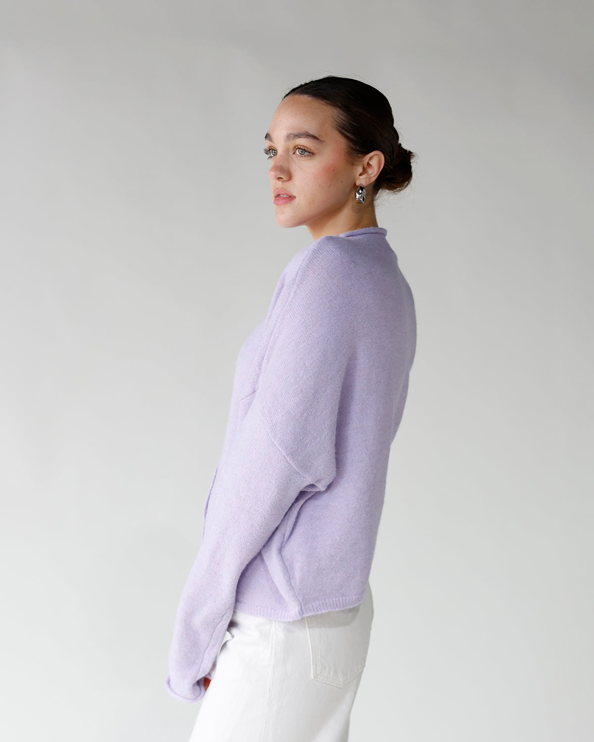 soft, versatile, and endlessly wearable β the cult cardi x lavender is a spring essential from our capsule collection. featuring a lightweight fit, button-front closure, and a soft rolled neckline, it hits just below the waist for effortless layering. the delicate lavender hue adds a sweet, flirty touch to any outfit, making it perfect for brunches, weekend strolls, or casual workdays. wear it closed and tucked with tailored trousers, layered over a tee and jeans, or under overalls β this lavender cardi makes every spring look feel fresh and playful π